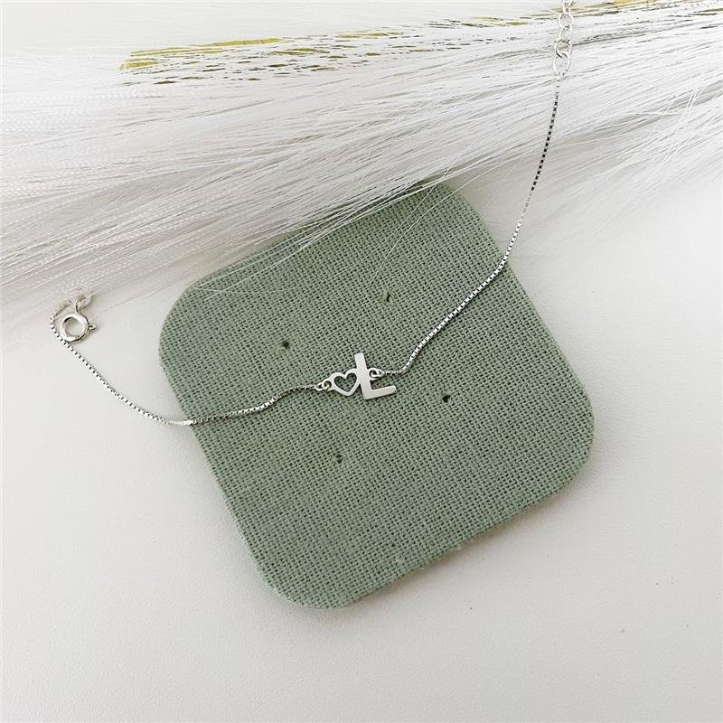 Pulseira Prata 925. Letra L isolada com coração grudadinho. Com extensor.Medidas: