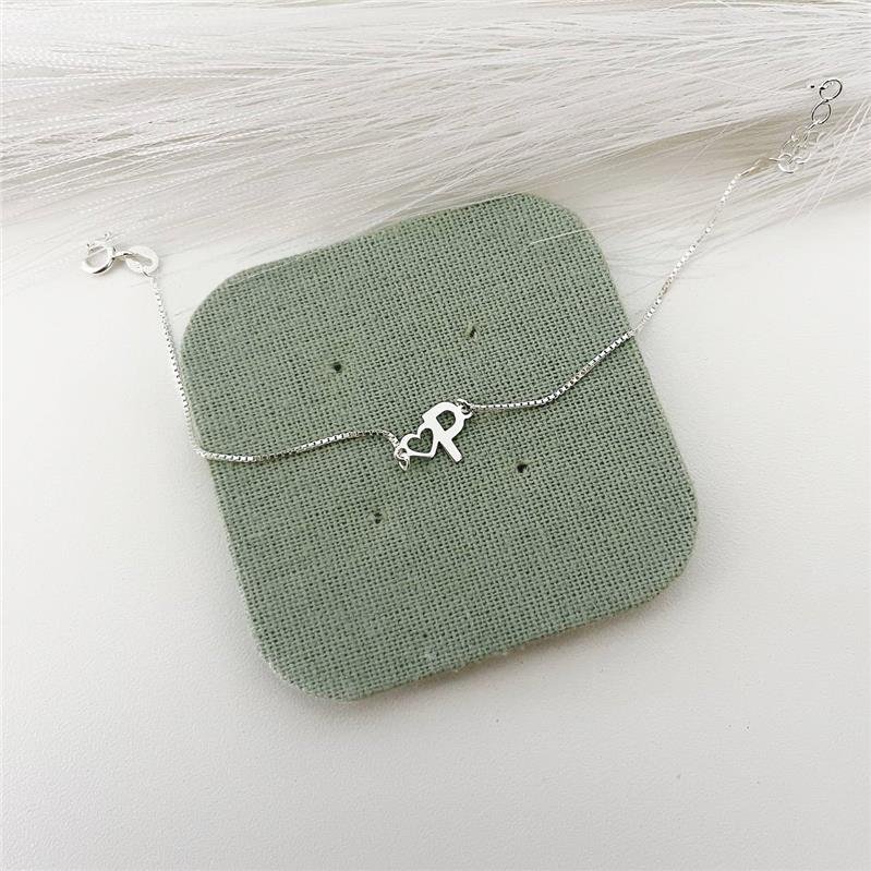 Pulseira Prata 925. Letra L isolada com coração grudadinho. Com extensor.Medidas:
