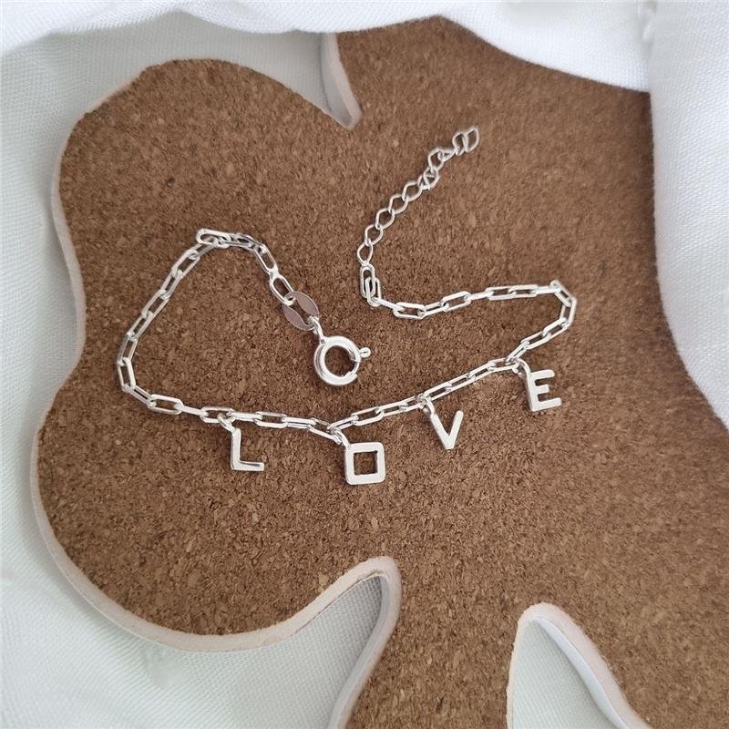 Pulseira Prata 925 legítima, elos cartier com letras em caixa alta formato quadrado formando a palavra 'LOVE' que significa 'AMOR'. Fecho boia.Medidas