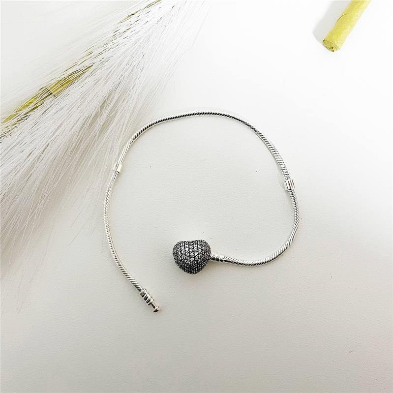 Pulseira Prata 925 Para Berloques Coração Cravejado.