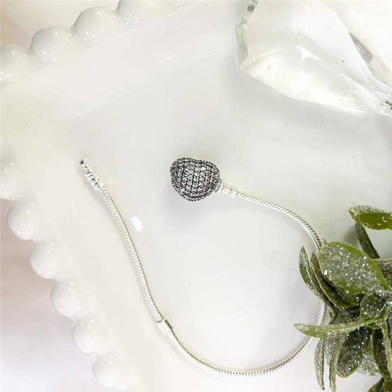 Pulseira Prata 925 legítima em bali. Pulseira para berloque inspiração Pandora com fecho coração com sua metade cravejada em pedra zircônia.