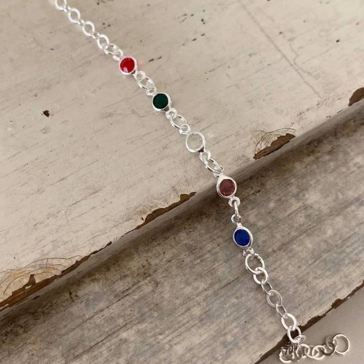 Pulseira Prata 925 legítima. Pulseira elos redondos com 5 pedras zircônia coloridas, sendo nas cores vermelha, verde, original, rosa e azul. Fecho boia.Medidas