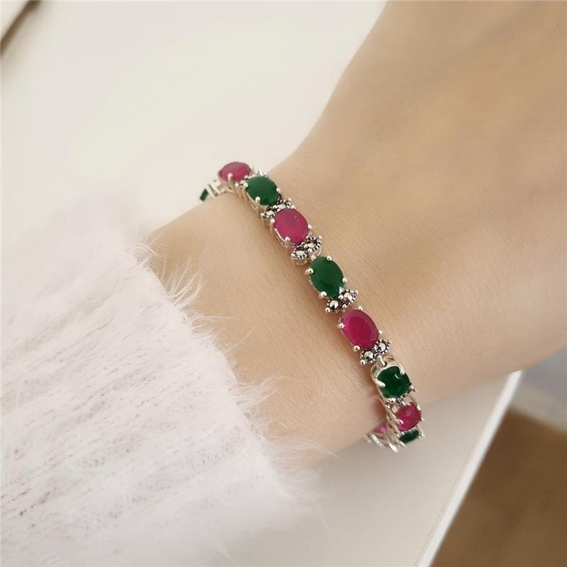 Pulseira Prata 925 Legitima em Bali. Pulseira com gomos sequenciados de formato oval cravejado com pedra de esmeralda e safiras, com marcassitas trabalhada com detalhes.Medidas: