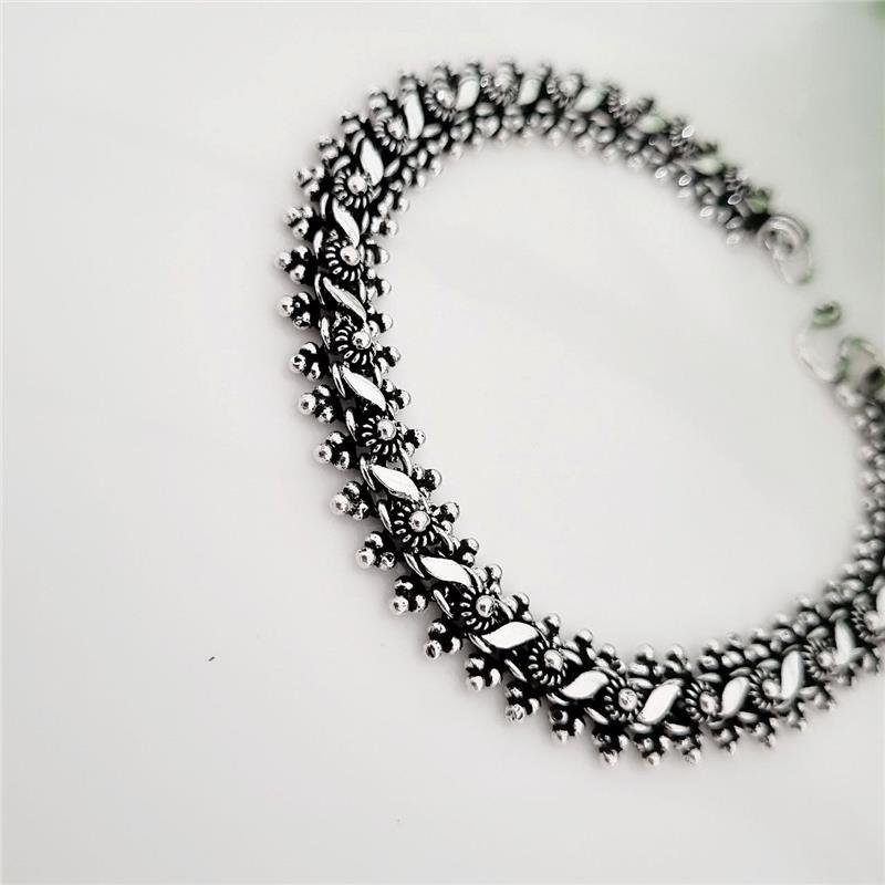 Pulseira Prata 925 legítima em bali. Pekun com folhas curvadas levemente em S, intercaladas por florzinha, bordas com babados triangulares formadas por três bolinhas. Fecho em S.Medidas