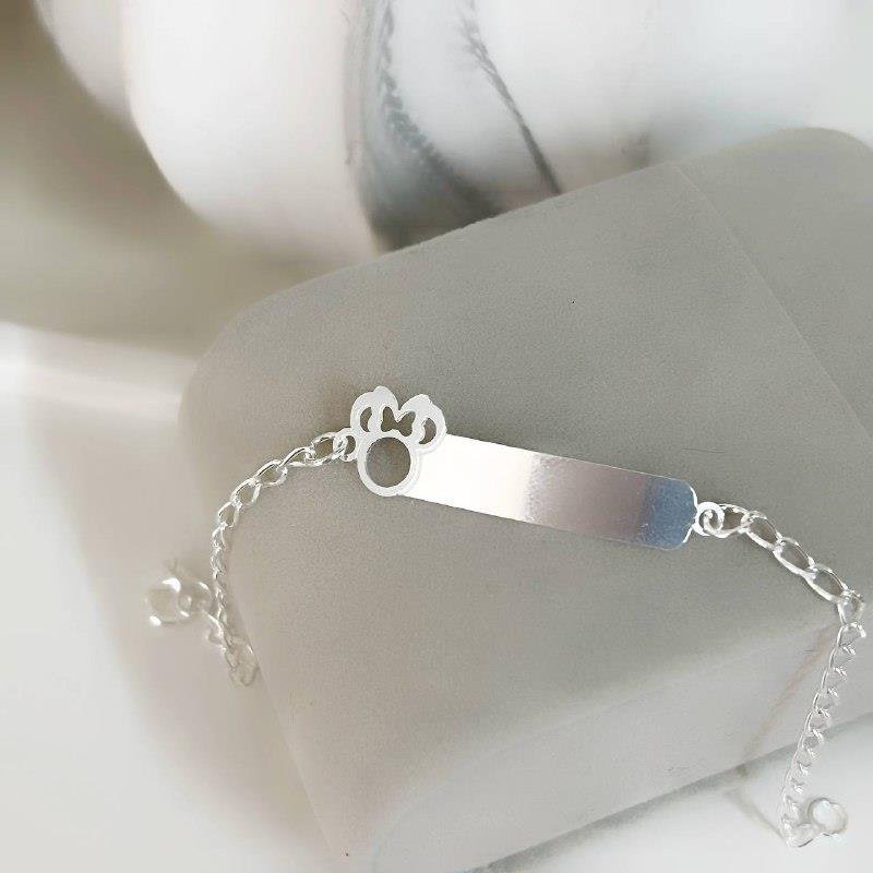 Pulseira em prata 925 com placa lisa personalizável e Minnie.