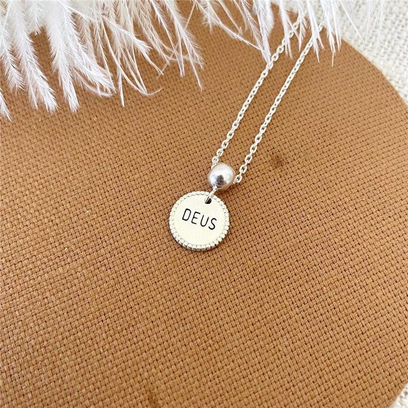 Pulseira Prata 925 legítima em bali. Corrente de elos retangulares com pingete plaquinha redondonda fundo liso com as bordas trabalhadas com bolinhas e no centro a palavra 'DEUS' em baixo relevo e fundo escurecido, base do pingente formato bolinha. Pulseira com extensor e fecho boia.Medidas