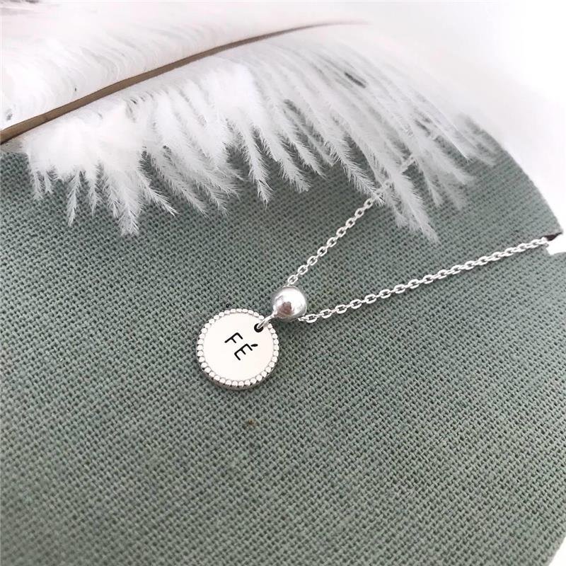Pulseira Prata 925 legítima em bali. Corrente de elos retangulares com pingente plaquinha redonda fundo liso com as bordas trabalhadas com bolinhas e no centro a palavra 'FÉ' em baixo relevo e fundo escurecido, base do pingente formato bolinha. Pulseira com extensor e fecho boia.Medidas