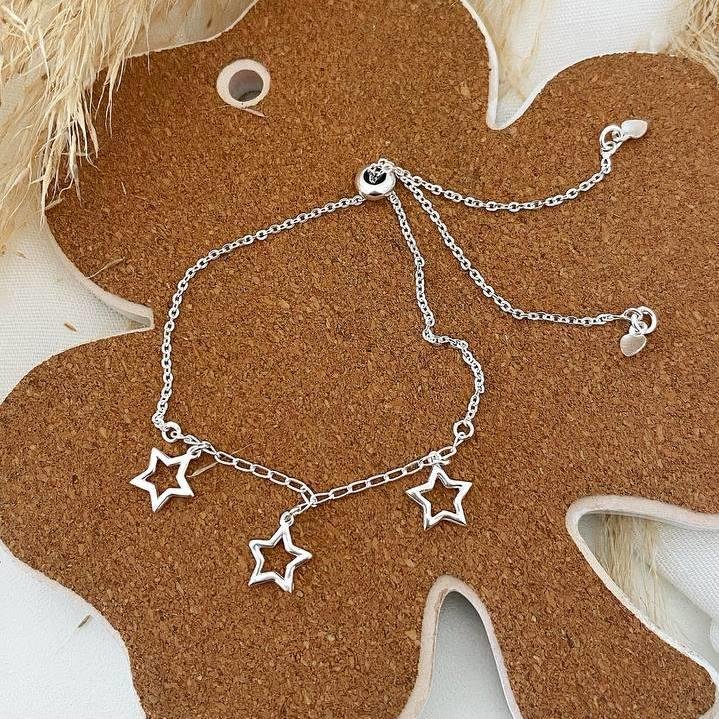 Pulseira Prata 925 Legitima. Elos com trê penduricalhos de estrela vazada. Fecho regulável.Medidas: