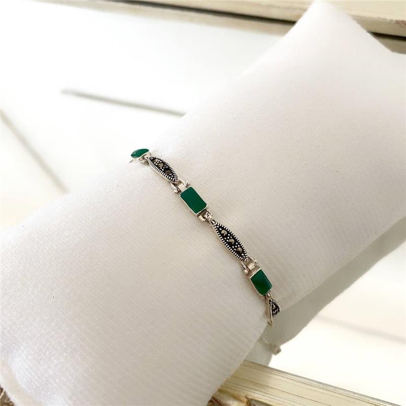 Pulseira Prata 925 Legitima em Bali. Pulseira com gomos sequenciados de formato de olhos cravejado com pedra marcassita e trabalhada com detalhes de bolinhas e listras, gomo retangular com pedra. Fecho regulável.Medidas:
