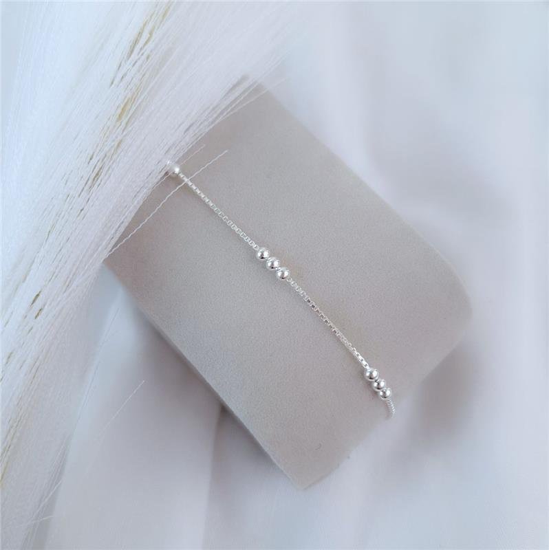 Pulseira Prata Branca 925 veneziana com detalhes de 3 bolinhas.Adorne seu pulso com a delicadeza e o brilho atemporal desta pulseira de prata 925 adornada com encantadoras bolinhas. Esta peça exibe um equilíbrio perfeito entre simplicidade e sofisticação, perfeita para complementar qualquer estilo, desde o casual até o mais refinado. Use-a sozinha para um toque sutil de elegância ou empilhe-a com outras pulseiras para criar uma aparência única e personalizada.