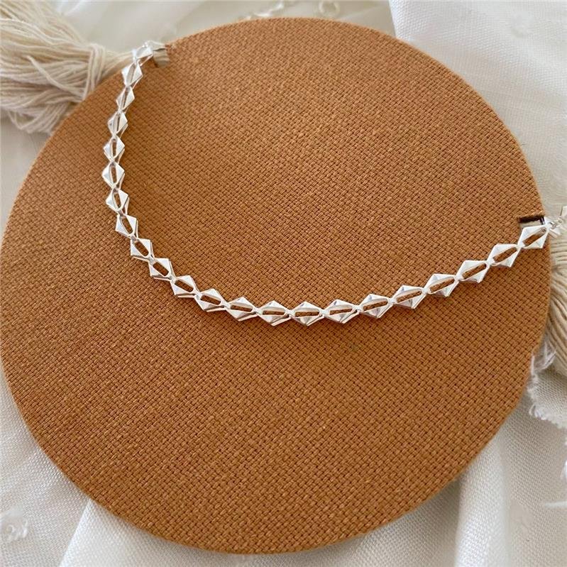 Tornozeleira 925 legitima. Losangos conectados um ao outro vazado na parte central da figura. Fecho boia.Medidas: