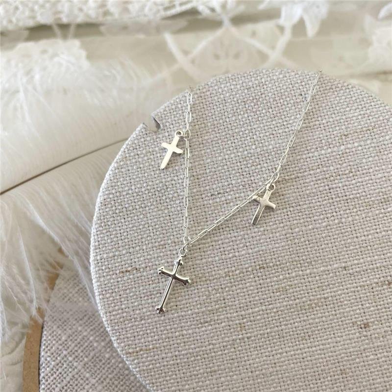 Tornozeleira Prata 925 legítima. Corrente de elos retângulares com três cruzes, sendo a do meio maior, abaulada e com as pontas trabalhadas e a das laterias menores, lisas e das pontas quadradas. Extensor de 3 cm com pequena plaquinha de coração na ponta. Fecho boia.Medidas:
