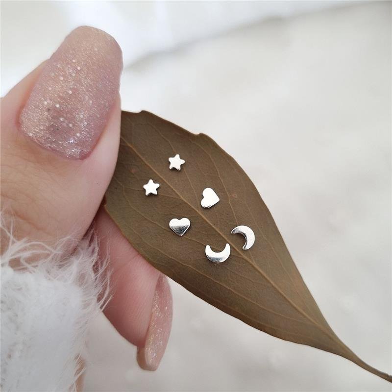 Brincos Prata 925 legítima.Trio com brincos pequenos lisos em formato de lua, coração, estrela. Fecho tarracha com pino no centro da peça.Medidas